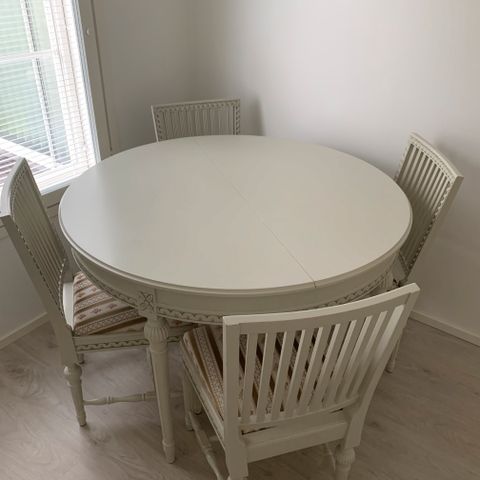 Jatkettava ruokapöytä ja tuolit