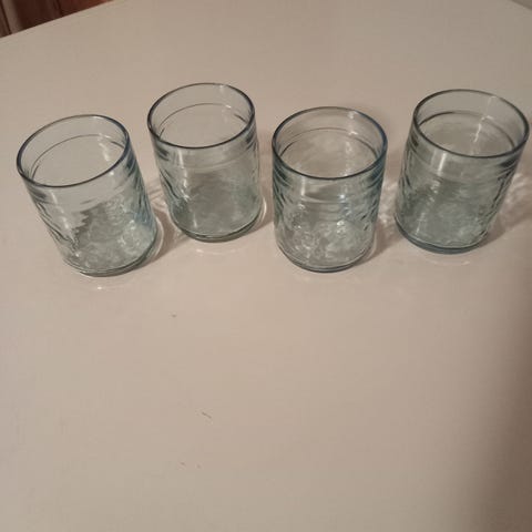 Vanha Karhulan lasin juomalasi. Paksua ja painavaa lasia. Korkeus n. 9,5 cm ja suuaukon halkaisija n. 6,6 cm. Pohjassa lukee, hieman heikosti erottuen, Karhula. Ulkopohjassa jonkin verran kolhua, joko valmistuksessa tai käytössä tullutta.