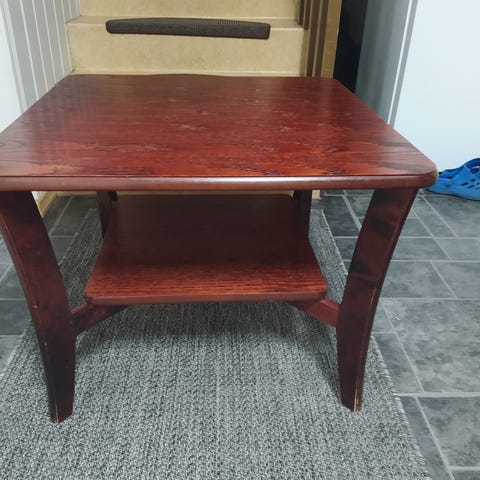 Pientä kunnostusta vaille priima ja tukeva sohvapöytä.