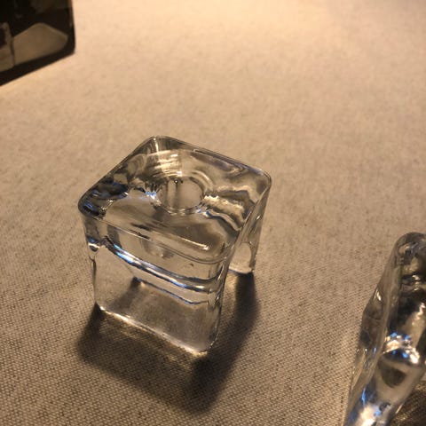 Juhava Oy RI-jalka, yhdistetty lasinen kirkas kynttilänjalka ja servettipidike. Koko 5 x 5 x 5 cm.