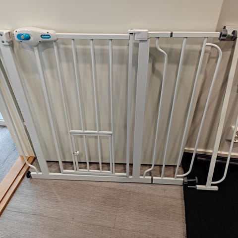 Säädettävä leveys 74-99 cm. Mukana kävelyaukko, joka helpottaa läpikulkemista. Sopii lemmikkien turvalliseen eristämiseen eri tiloissa.