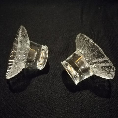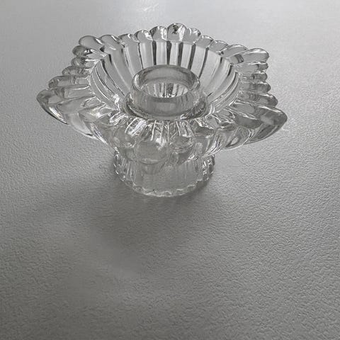 Riihimäen lasi Kehrä pieni lasinen kirkas kynttilänjalka ohuelle kynttilälle. Nanny Still suunnitellut Riihimäen lasille, leveys 6 cm, korkeus 3 cm. Hyväkuntoinen.