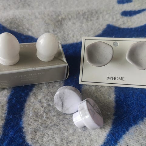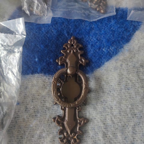 Setti erilaisia vetimiä. Mukaan saa kullan värisen WC-paperitelineen (puuttuu kiinnitysosa).