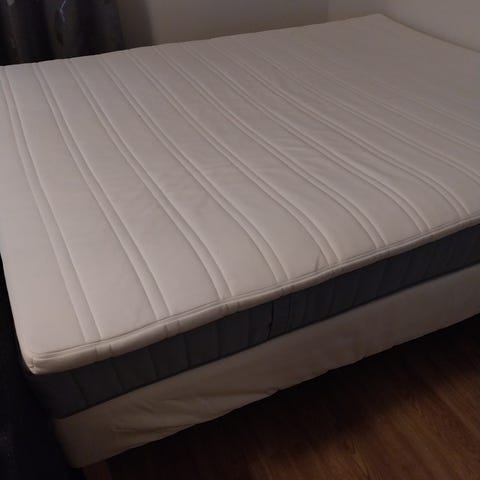 Sängyn merkistä ei muistikuvia. N. 40cm korkea. Melko pehmeä patja. 2kpl 80cm sänkyä = 160cm.