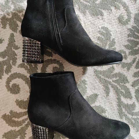 Mokkanahkaista materiaalia olevat mustat korkkarit. Hyvä kunto. Korko noin 9cm.