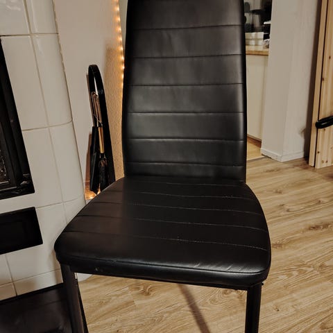 5 kpl Lana-lankkupöydän tuoleja. Yleisilme siisti, joitain naarmuja/kolhuja löytyy. Viimeisessä kuvassa pahin. Kissa kokeillut kyseisen tuolin kulmaa.
