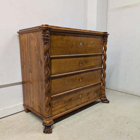 Tämä antiikki komeus etsii uutta kotia. Kyseessä monipuolinen peilipiironki. Yläosa pois nostettava, joten voi myös käyttää pelkkänä lipastona. Heti tason alta löytyy klaffiluukku, joka kätkee sisäänsä useamman pienen vetolaatikon, pikku kaapin sekä pari salalokeroa. Katso kuvat. Avaimia on tallessa ja suurin osa lukoista toimii. Yhden pienen ja suuren vetolaatikon lukko ei toimi. Ei hajuja.