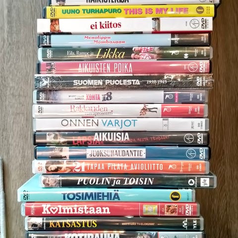 5 dvd elokuvaa ja yhessä siis kaksi kaikissa naarmuja mutta varmasti katsottavissa