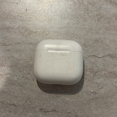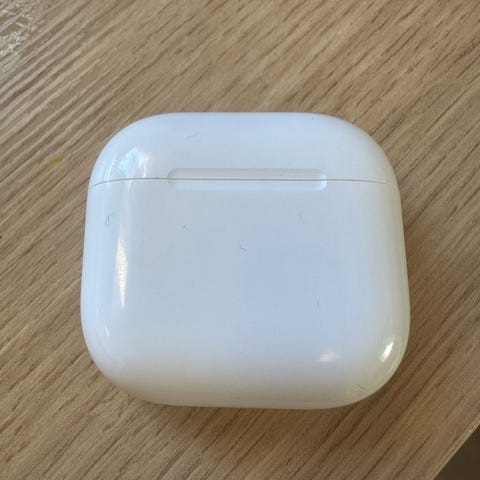 Apple AirPods langattomat kuulokkeet valkoisena. Kuulokkeet toimitetaan latauskotelon. Pouli vuotta vanhat ja toimii hyviin.