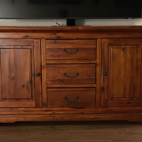 Täyspuuta oleva kaunis iso senkki. Tehty aikoinaan puusepän toimesta. Kaikki avaimet tallella ja toimivat kaapinovet. Senkissä on käytön jälkiä pinnassa, kuten toisessa kuvassa näkyy.