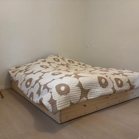 Patjat ja petivaatteet eivät kuulu. Toki patjasta voidaan neuvotella. Ei kotieläimiä ja aina patjan suojus käytössä eli ei tahroja tms.