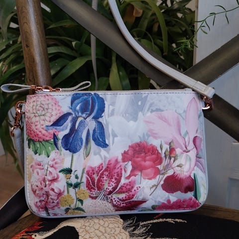 Myyn Ted Bakerin penaalin. Tätä voi käyttää myös sivellinkotelona tms. Väri on harmaa. Rusetin alaosa vaaleanpunainen. Vetoketju ja metalliosat ruusukullan väriset. Pituus 20 cm.