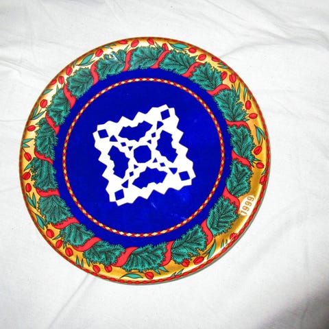 Arabia Joulukoriste 1996 seinälautanen. Lautanen on valmistettu posliinista ja siinä on joulukuva-aiheinen koriste. Lautanen on suunniteltu seinälle ripustettavaksi.