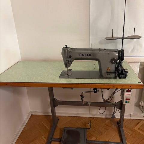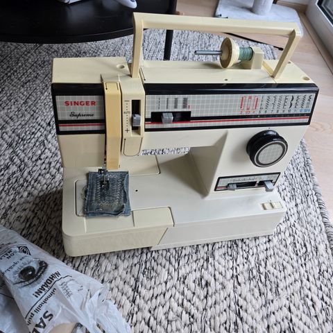 Minulla oli kokemusta vain teollisuuskoneesta ja tällaisen kotikoneen sirous oli järkytys (siitä huolimatta että tämä ei ole siroimmasta päästä kotikoneita). Koneella on ommeltu osa yhdestä vaatteesta mutta se on jäänyt viime keväästä asti täysin ilman käyttöä. Hintapyyntö on 2/3 uuden hinnasta.