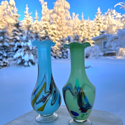 Kauniit vintage Oberglas Carnival maljakot 2kpl