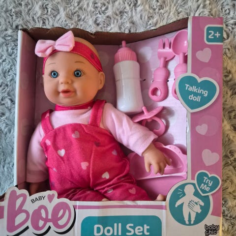Avaamaton paketti. Saatu joululahjaksi, mutta lapsilla jo ennestään tarpeeksi nukkeja.