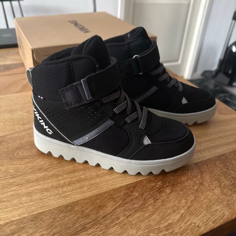 Viking lasten talvikengät koko 33, väriltään vihreät. Kengissä on Gore-Tex -kalvo, joka tekee niistä vedenpitävät ja hengittävät. Unisex-malli sopii sekä tytöille että pojille.