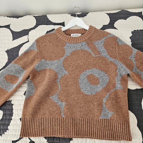 Siistikuntoinen ja lämmin Marimekon Polkujen Unikko villaneule koko xs. Villa-alpakkasekoitetta. Oversize malli eli reilua kokoa. Kunnossa ei moitteita.