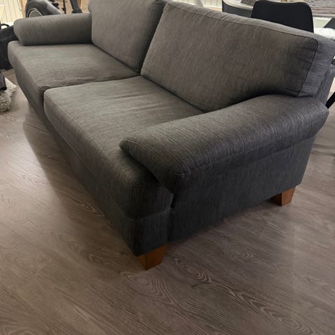 Vaalean harmaa 3hengen sohva. Tahroja istuinosassa, lähtevät varmaan tekstiilipesurilla. Hyvä istua. Haku mieluiten tänään tai viimeistään viikonloppuna. Koristetyynykangasta ja viltti ei mukaan.