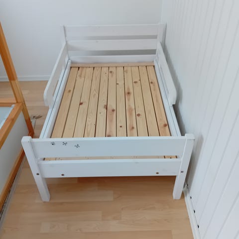 Sängyn mukana saa Familon lastenpatjan ja -jatkopalan 75x130 cm + 30 cm, sekä sijauspatjan lastenpatjaan 75x160 cm. Patjat ovat siistissä kunnossa.