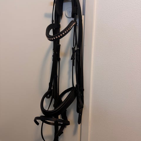 Suitset, ohjakset, riimu, satulahuopa (3x), valurautateline, hevosharja yms.