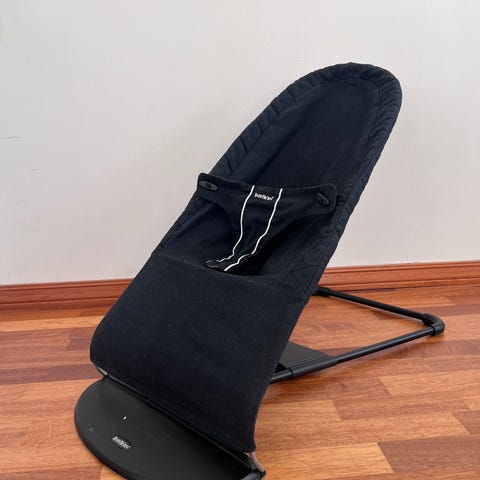 Sitteri vaaleansinisellä kankaalla. Kankaassa kulumaa/haalistumaa, mutta ei näkyviä tahroja. Pesty hajusteettomalla pesuaineella.