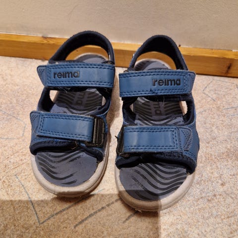Reiman Himppu sandaalit, kaunis farkunsininen väri. Siisti käytetty kunto. Tarrat pitää hyvin, pohjat kunnossa. Sisämitta 17 cm.