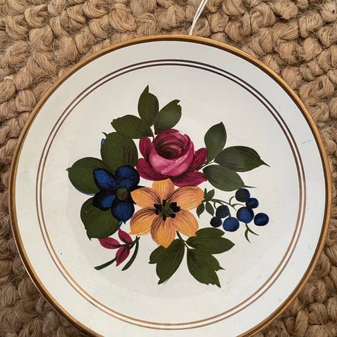 Käsin maalattu, koko n. 20,8 cm x 20,7 cm.