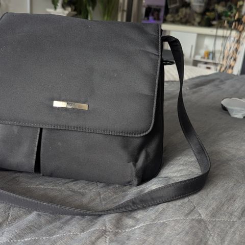 Pieni,kevyt olkalaukku,monta taskua