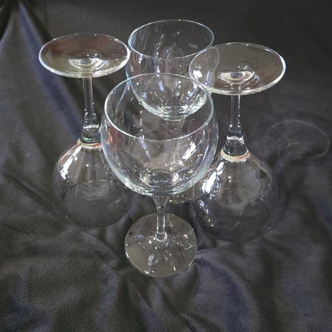 Kuusi kpl viinilaseja, joissa on koristeellinen kuviointi, korkeus n. 20 cm. Sopii viinin tarjoiluun ja käyttöön keittiössä tai ruokailutilassa. Ei olleet koskaan käytössä, pelkästään vitriinissä.