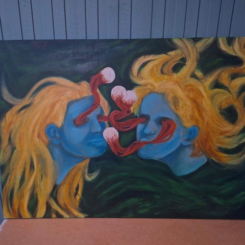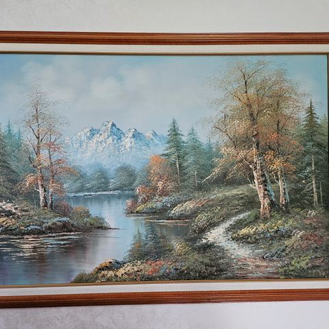 Antiikkisissa kehyksissä Arvi Ojan signeeraamana öljyvärityö. Kehykset 38 cm × 48 cm. Muut tiedot takana. Kehyksen kulmissa reijät muunlaiseen ripustukseen.