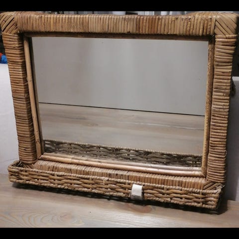 Riviera Maison peilihylly, käytetty kunto. Tasolla vähän jälkiä ja yksi ruuvi on sivussa ollut näkyvissä jo ostettaessa. Melko painava, rottinkireunus. Vain nouto.