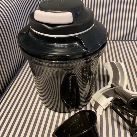 Uusi Tupperware SuperSonic Chopper Suuri. Kaarevat, terävät terät jotka silppuavat erittäin nopeasti vihannekset, yrtit ja hedelmät. Vispiläosa sekoittamiseen ja vatkaamiseen. Tilavuus 1,35l. Mmm.