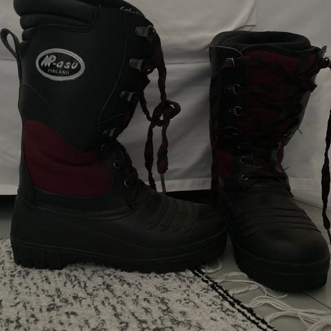 Muutamia kertoja käytetyt kelkkailukengät. Vasemman jalan kengässä sisäsyrjässä pieni nirhauma, ei vaikuta käyttöön.