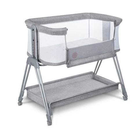 Sivuvaunusänky valkoisesta puusta. Sängyssä on tähtikuvioitu reunapehmuste, joka on kiinnitetty sängyn reunoihin. Sänky on varustettu pyörillä, mikä mahdollistaa helpon siirtämisen. Pyörissä jarrut. Sopii vastasyntyneelle lapselle vieressä nukkumiseen. Pinnoissa hieman kuluman jälkiä. Mukaan saat patjan, lakanan ja reunapehmusteet. Korkeutta saa säädettyä, laidan saa laskettua alas. Pituus 100cm ja leveys 50cm. Nouto Korsosta.