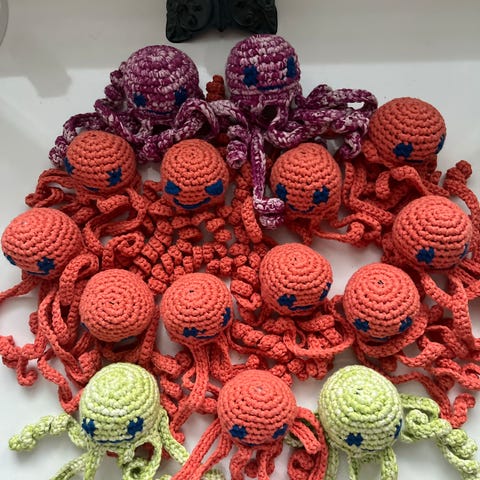 Sininen virkattu mustekala pehmolelu