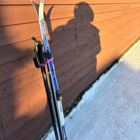 Salomon sukset 141 cm SNS-siteellä ja Swix sauvat 100 cm