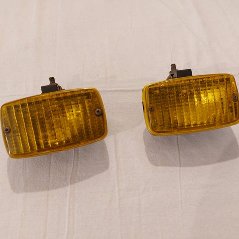 Yhden kiinnike rikki. Toisen heijastepinta tummentunut. Noista kasaa kolme hyvää. Poltttimet kunnossa. Kolme metallista kiinnikettä mukana, mutta vaativat johonkin levyyn hitsaamista, että saa mieleisesti kiinnitettyä. Kopat pitää avata, että saa johdot jatkettua.
