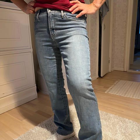 Kuin uudet, muutaman kerran käytetyt Tom Tailorin tummansiniset bootcut -farkut. Vyötäröltään 29" ja lahkeeltaan 34" eli 84cm. Mielestäni täydellisen mittaiset 180cm pitkälle kuten itselleni. Vyötärön korkeus on normaali, ei korkea, minkä vuoksi ei itsellä tule pidettyä. Mukavan joustavat päällä ja kauniin sävyiset - tietyt kohdat korostuvat kuvissa haaleampina kuin oikeasti.