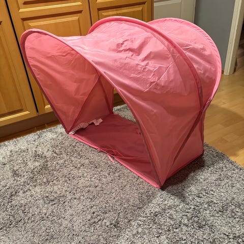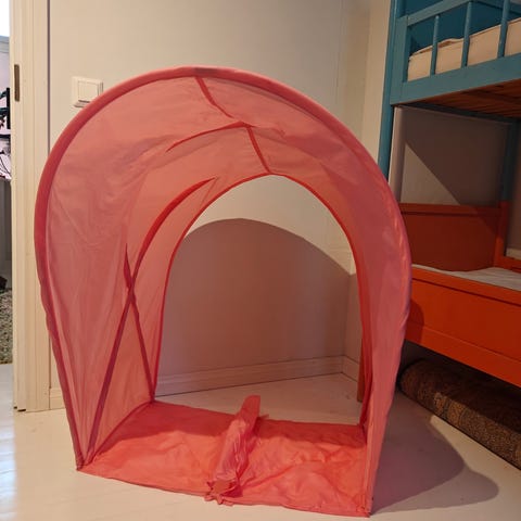 Sopii käytettäväksi sängyllä tai sisätiloissa lapsille. Valmistettu kestävästä materiaalista, helppo asentaa ja siirtää. Väri vaaleanpunainen.