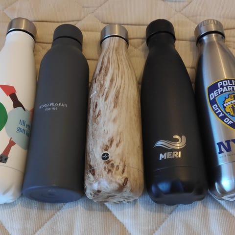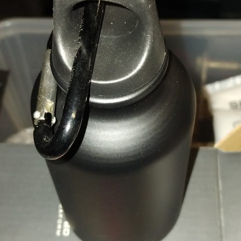 Retkeilyyn, pyöräilyyn jne. erittäin kestävä teräksinen Sagaformin pullo. Karabiinihaka. Löytyy kaksi. Molemmat 15eur.