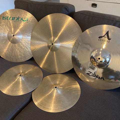 - 14" Super Zyn hihat symbaali B20, aika jaksolta 1951-1967. Keskireijässä muutama hiushalkeama muuten bueno. Lie joskus haikka kaatunut tai "klutsi" ollut liian kireällä mutta ei ole minulla ollessa muuttunut yhtään. 60e