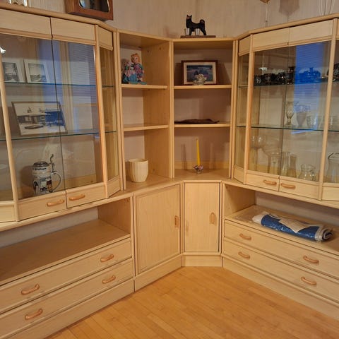 Samaa sarjaa olevat vitriini ja senkki.