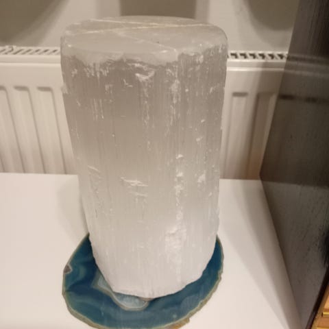 Iso, noin 10cm halkaisijalla oleva seleniittikuula. 🤍🤍