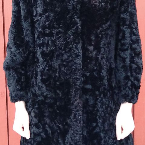 Lämmin turkisateljeessa teetetty reisimittainen musta krimiturkki 90-luvulta. Väljän mallinen turkki pitää perinteisesti lämpimänä kovallakin pakkasella ja alle mahtuu vaatetta. Käytännöllinen pituuden suhteen myös autoillessa. Uutta vastaava, jäänyt aikanaan käyttämättömäksi ja säilytetty aina vaatehuoneessa pukupussissa. Erittäin siisti ja virheetön. (Sysimusta, vaikka eri valaistuksissa otetuissa kuvissa vaihtelua.)