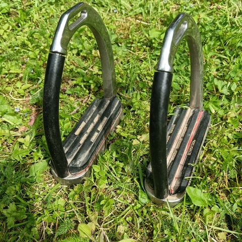 Turvajalustimet, aukon leveys 12 cm, koko jalustimen korkeus n. 15 cm. Kuminauhat eivät enää priimaa.