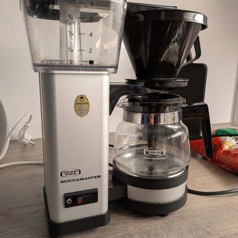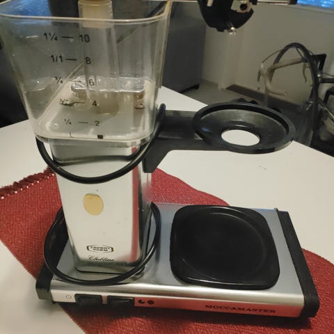 Moccamaster Clubline 10-kupin kahvinkeitin. Manuaalitippalukon osat poistettu muuten kaikinpuolin toimiva. Muoviosat kunnossa.