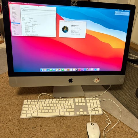 Hyväkuntoinen Apple iMac pöytätietokone, 27 tuuman näyttö. Väri hopea.