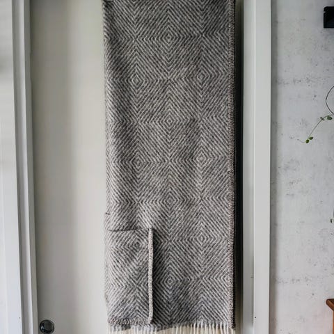 Huivin leveys 62cm ja pituus 160cm. Päissä taskut missä helppo pitää nenäliinaa, kännykkää tai mitä milloinkin. Väri on kuin raaka luumu. Kulkeutuu postissa S kokoisessa paketissa 7,9e