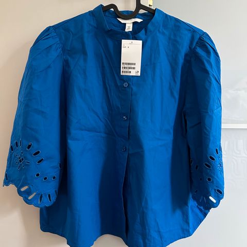H&M Divided pusero, koko S, valkoinen väri, valmistettu puuvillasta. Naisten vaate, jossa pitsikoristeita hihansuissa ja edessä. Erittäin kaunis paita vaikka juhliin.
